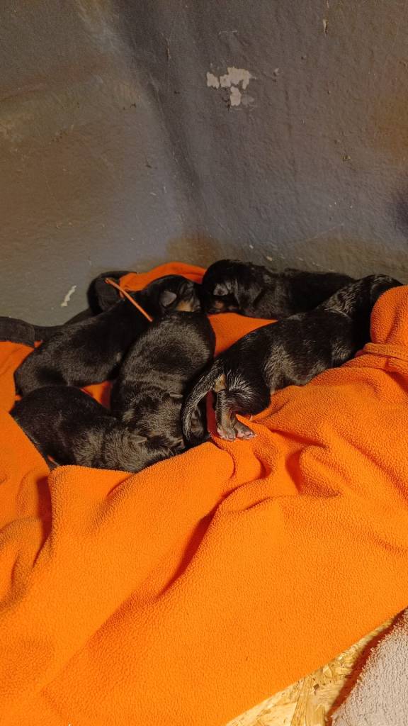 Uschka hat heute Nacht zwei Rüden und drei Hündinnen nach Sam vom Gründauer Hain geworfen.