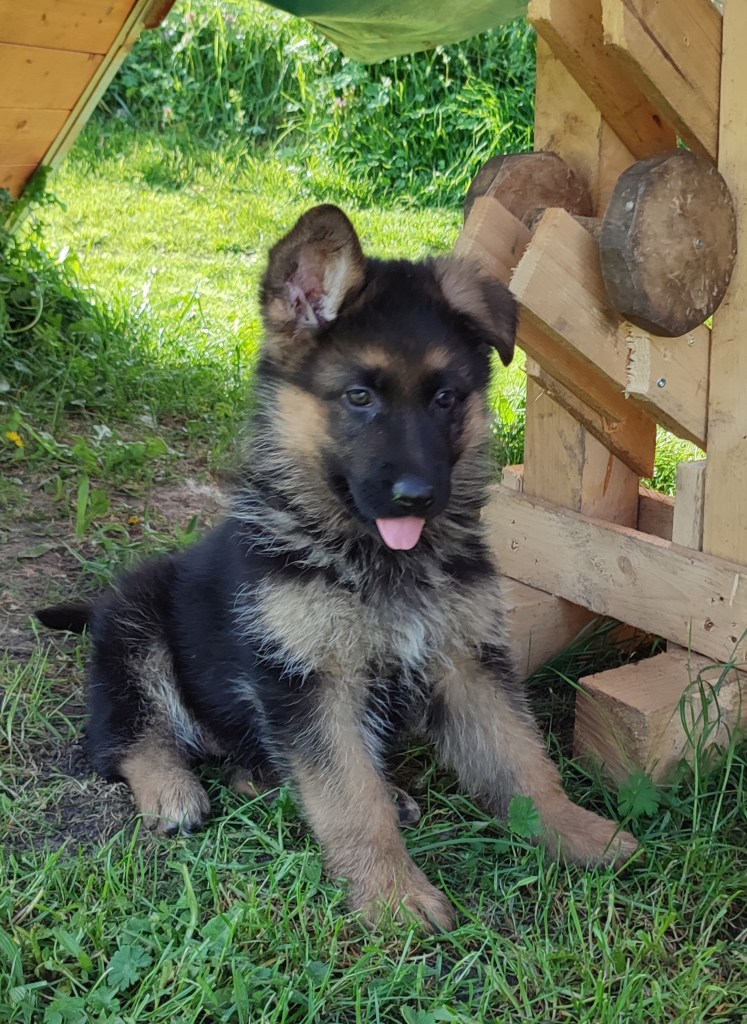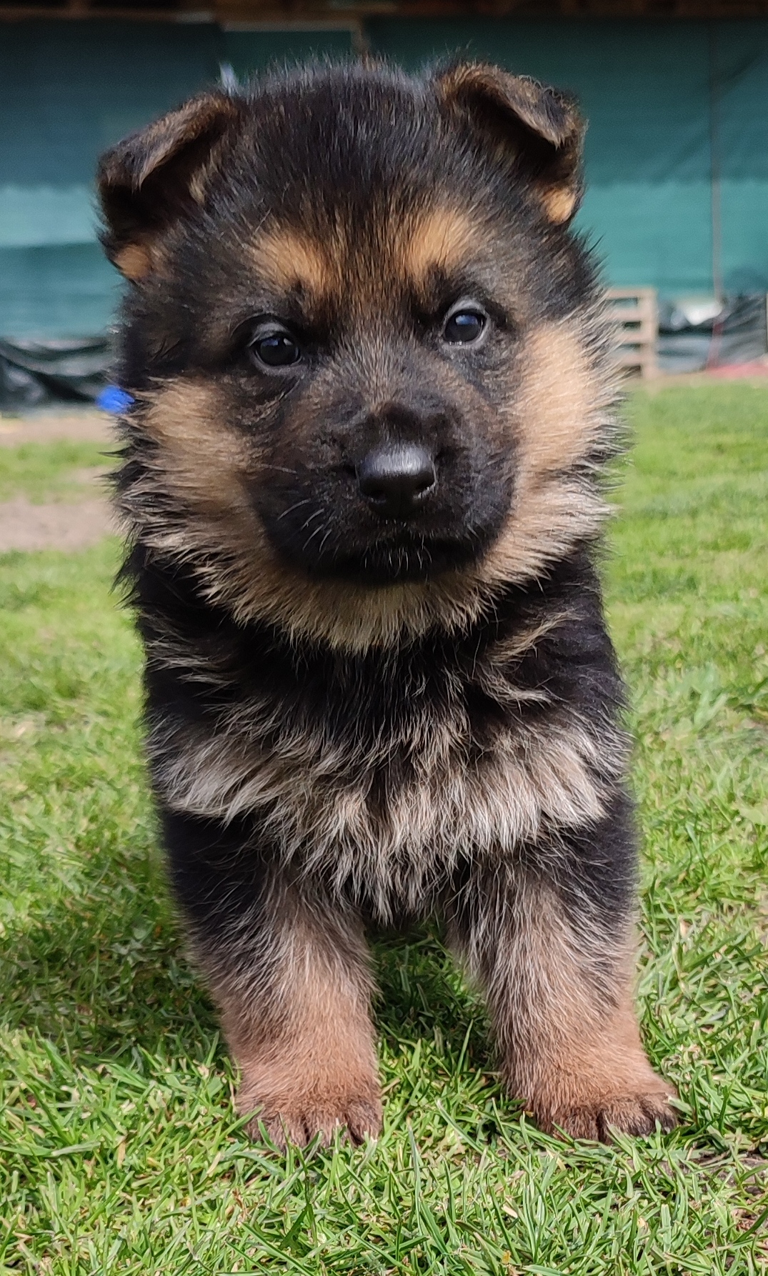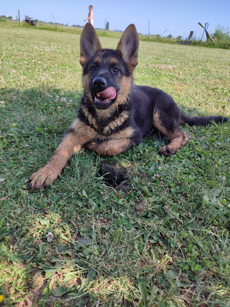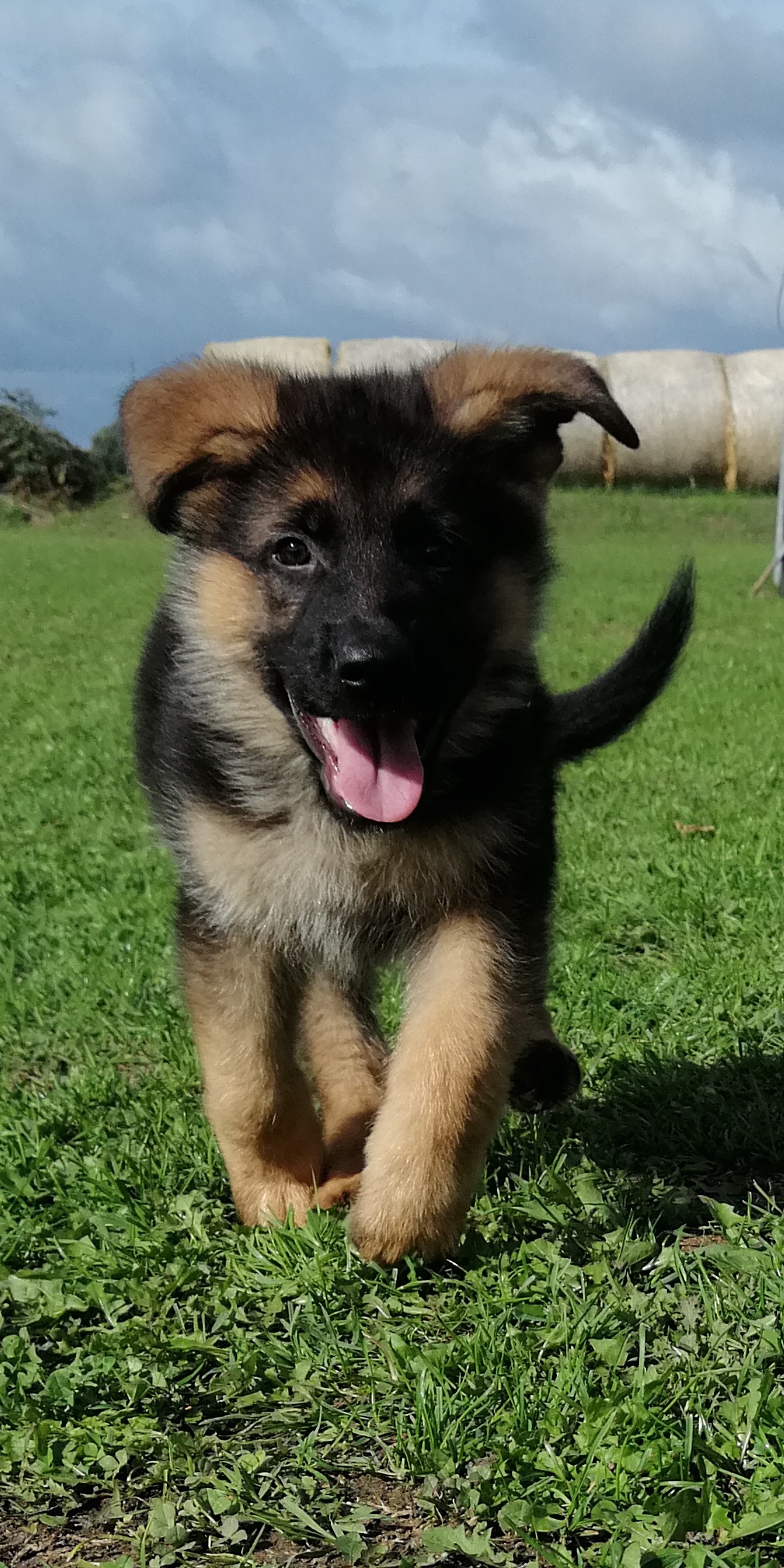 Zaire ist eine absolut freundliche, offene und neugierige Hündin. Sie ist am 10.03.2023 geboren. Ihre Mutter ist unsere Oana, Vater ist unser Sam. Beide Eltern sind nachweislich frei von HD und ED und haben einen geraden Rücken. Zaire kennt Kinder, andere Hunde und hatte auch schon kontakt zu Pferden. Sie zeigt sich sehr lernwillig beim Futtertreiben und hat auch sonst jede menge Spaß, wenn es darum geht Neues zu erlernen. Zaire ist selbstverständlich mehrfach entwurmt, geimpft und gechipt. Sie hat einen blauen EU-Heimtierausweis und erhält rote SV Papiere. Bei Fragen zu Zaire sowie für ein Kennenlernen, stehen wir jederzeit zur Verfügung.