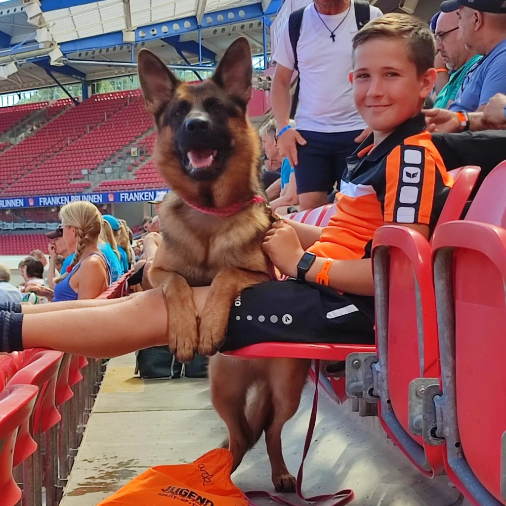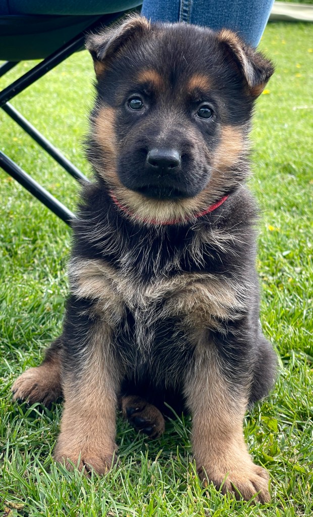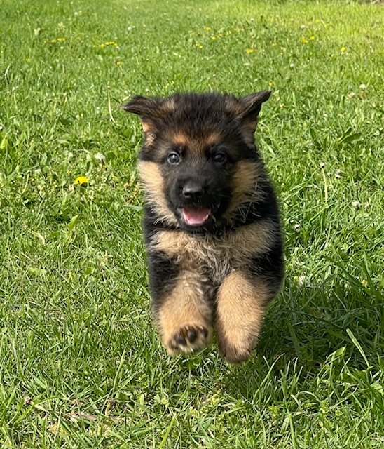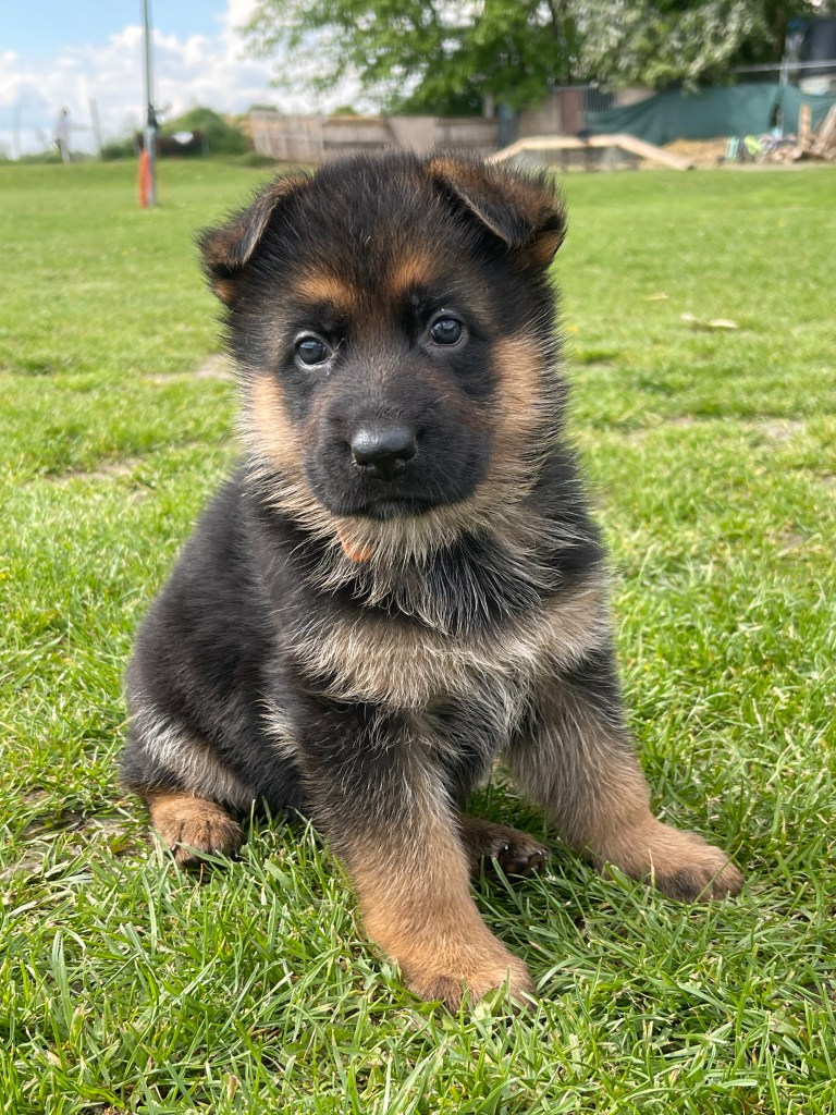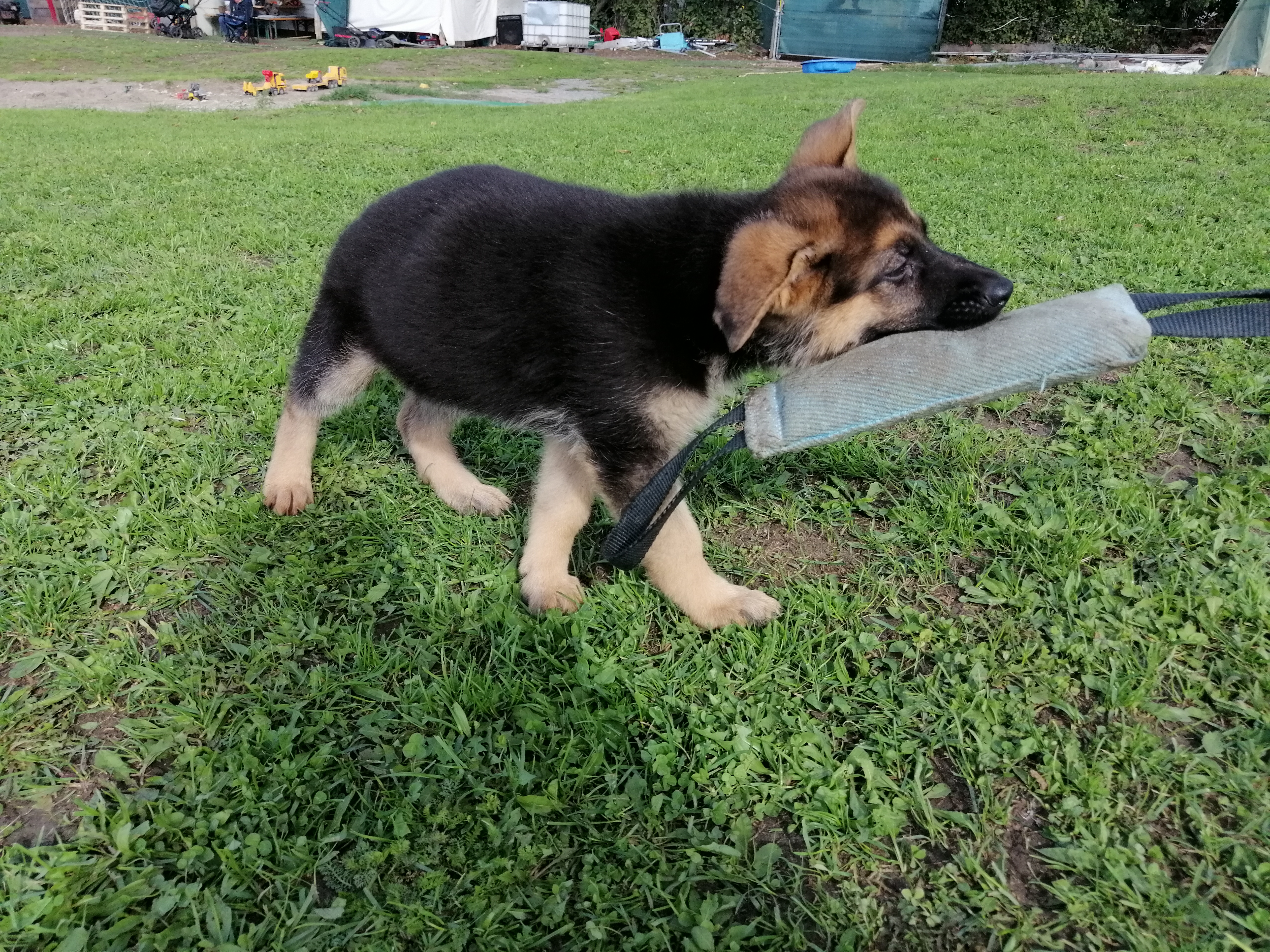Zaire ist eine absolut freundliche, offene und neugierige Hündin. Sie ist am 10.03.2023 geboren. Ihre Mutter ist unsere Oana, Vater ist unser Sam. Beide Eltern sind nachweislich frei von HD und ED und haben einen geraden Rücken. Zaire kennt Kinder, andere Hunde und hatte auch schon kontakt zu Pferden. Sie zeigt sich sehr lernwillig beim Futtertreiben und hat auch sonst jede menge Spaß, wenn es darum geht Neues zu erlernen. Zaire ist selbstverständlich mehrfach entwurmt, geimpft und gechipt. Sie hat einen blauen EU-Heimtierausweis und erhält rote SV Papiere. Bei Fragen zu Zaire sowie für ein Kennenlernen, stehen wir jederzeit zur Verfügung.
